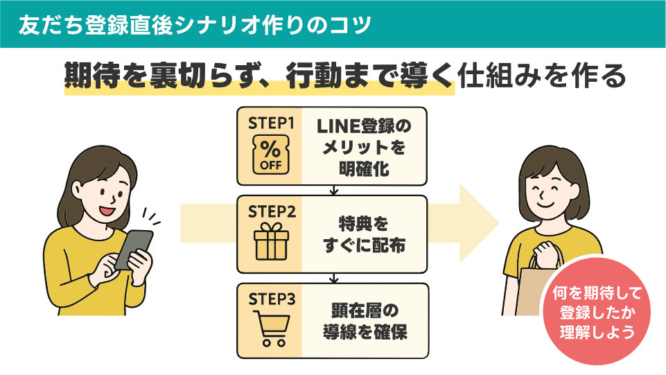 • ウェルカムメッセージでLINE登録のメリットを明確に