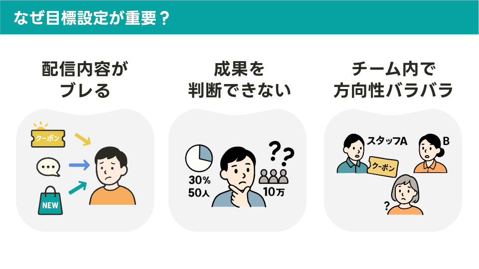 ゴールが共有されていないと、スタッフによって対応や配信内容が異なってしまいます。