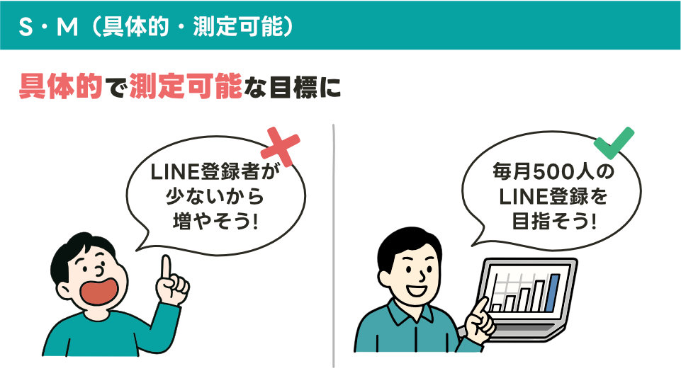良い例: 「毎月100人の新規LINE登録者を獲得する」